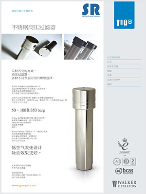 高品質的WALKER不銹鋼高壓過濾器采用高等級316不銹鋼和專用鍍層碳鋼制造,耐腐蝕耐高壓,適用于大多數工業氣體過濾,包括壓縮空氣,氮氣、氫氣、氨氣和成分復雜的石油氣、天然氣等,WALKER不銹鋼高壓過濾器品類齊全,共有21種型號,可以分別滿足壓力為50barg、100barg、350barg時的不同流量情況的應用要求。本系列產品可提供25μm、5μm、1μm和0.01μm及活性炭過濾等級性能,足以滿足各種應用要求,確保高效過濾和最小壓差損失。低空氣流速設計可以實現更好的除油效果,這一系列WALKER高壓過濾器的不銹鋼外殼也可以轉化成為氣水分離器外殼。