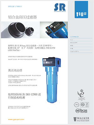 高性價(jià)比的SR鑄鋁高壓過濾器,適用于20barg及50barg高壓力壓縮空氣,共有22種型號(hào),能夠?qū)崿F(xiàn)1/4"至3"接口的連接,處理容量達(dá)2580SCFM(4383Nm3/hr)。SR鑄鋁高壓過濾器系列產(chǎn)品有三種不同的外殼,均由質(zhì)優(yōu)壓鑄鋁制造而成,所有殼體內(nèi)部和外部均采用電泳涂層處理,并且外部殼體采用堅(jiān)實(shí)的聚酯粉末噴涂,這樣處理使得殼體不僅防腐蝕,而且也更耐高壓,從而實(shí)現(xiàn)SR鑄鋁高壓過濾器對(duì)高壓力壓縮空氣優(yōu)異的過濾性能。