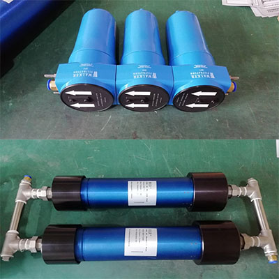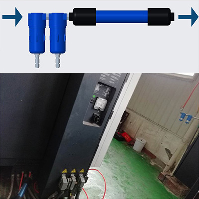 我們的技術同事根據這種特殊情況,專門為客戶設計了一套兩支CMD TM3000并聯的方案,同時,因為客戶的設備上進氣口之前沒有任何過濾措施,客戶讓我們幫忙選了一套三級過濾器來提高進入S