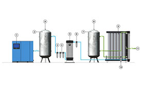 • 通過壓縮空氣制氮氣——氮氣純度可達99.999%的制氮機