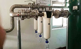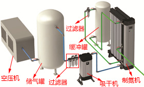 高純度制氮機(jī)介紹 空氣壓縮機(jī)提供的壓縮空氣首先通入壓縮空氣凈化組件中,壓縮空氣先通過過濾器除去壓縮空氣中大部分的油、水、固體顆粒等雜質(zhì),然后再經(jīng)過精密過濾器進(jìn)一步除去