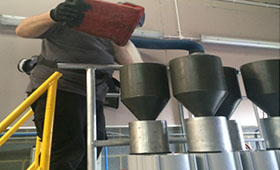 分子篩裝填過于松散,且裝填量不夠時,更容易造成分子篩粉化。而SR吸附式干燥機(jī)和SR超高純度制氮機(jī)都是采用“暴風(fēng)雪填充”分子篩,填裝均勻,氣流穩(wěn)定,不會造成分子篩粉化。
