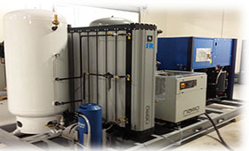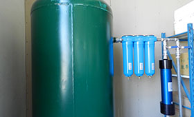 在壓縮空氣吸附式干燥機的前端可以安裝前置過濾器,用來處理壓縮空氣中可能存在的液態水、固體粒子、油霧等,如果有大量的油霧直接進入到吸附式干燥機的吸附塔,會嚴重惡化吸附式干燥